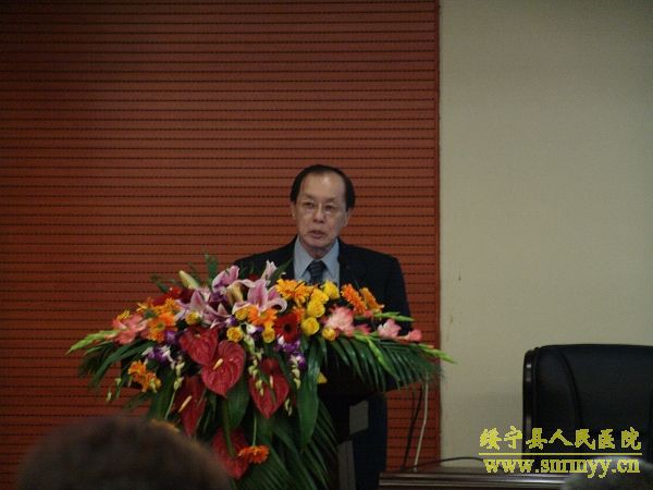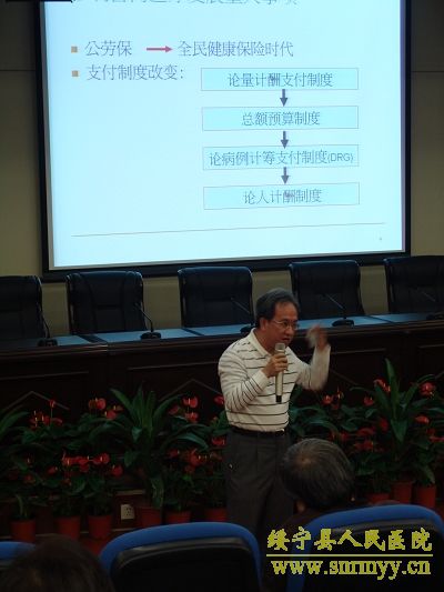 台湾阳明大学卫生福利研究所蓝忠孚教授在做《台湾医疗改革与医院经营》专题报告