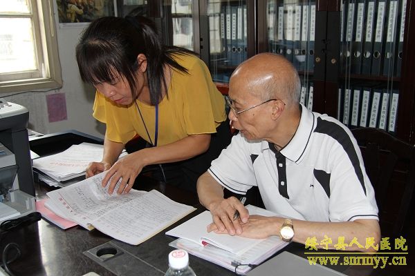 神经外科专家郭国华由副院长钱秋炳、沈建辉陪同在外二科实地抽查病历
