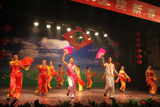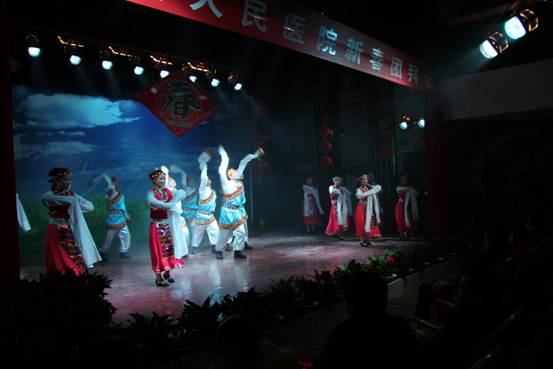 由财务科、功能科、药剂科选送的舞蹈《贺新年》