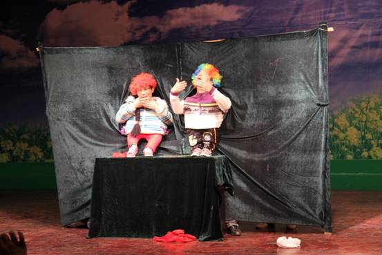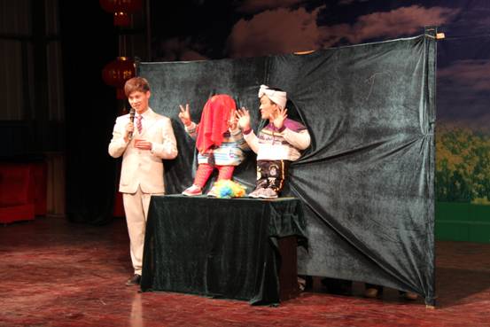由总务科选送的幽默表演《迎春接福》