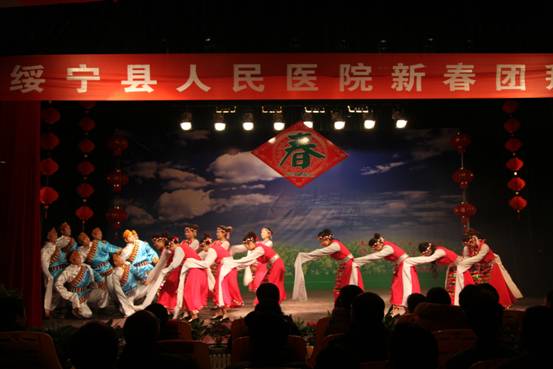 2012年元月18日晚,县文化馆三楼会场内,张灯结彩,人声鼎沸,笑语晏晏,一团和乐,我院职工与莅临嘉宾欢聚一堂共度佳节。由我院主办,县文化馆、省四建公司、邵阳市药业有限公司协办的绥宁县人民医院2012团拜会暨“春之歌”文艺晚会,在感人肺腑的院歌《爱的天使》中拉开序幕。
