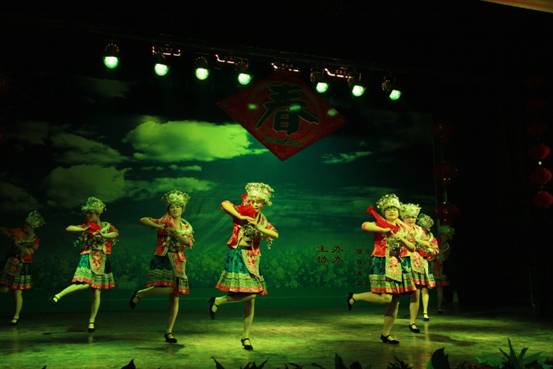 由内二科、内一科、内三科、外二科、急诊科选送的舞蹈《苗家姑娘过山来》