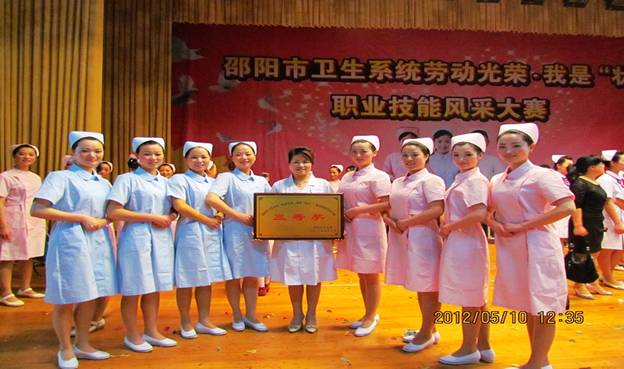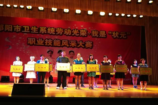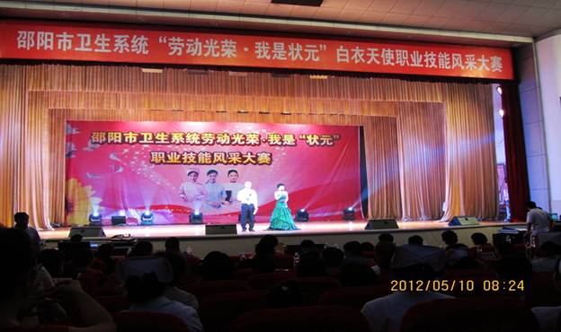 为纪念“5·12”国际护士节100周年,弘扬南丁格尔精神,深化优质护理服务内涵,5月10日上午,在邵阳市卫生局精心组织策划下,全市卫生系统 “劳动光荣·我是状元”白衣天使职业技能风采大赛在市委礼堂隆重举行。 市卫生局局长刘晓江到会发表了热情洋溢的致辞,针对我市护理事业的发展提出了明确要求和深切期望,同时,向全市战斗在一线的护理工作者致以节日的问候! 此次大赛共有21支代表队参赛,各队以情景剧、小合唱、礼仪操、手语等不同形式,从不同角度生动的诠释了优质护理服务及服务礼仪,经过激烈的角逐,我院情景剧《爱的天使》以规范的礼仪演示、真挚的情感表达,赢得现场观众阵阵掌声,最终荣获大赛三等奖,为唯一获奖的县级医院代表队。 (撰稿:护理部黎丁娥)