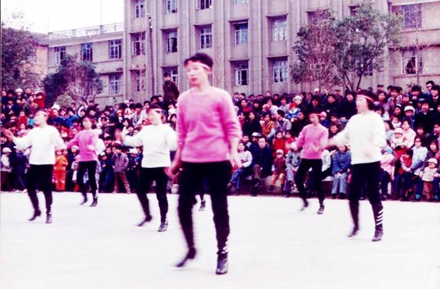 图为1989年3月我院参加全县健美操比赛情景。前者为杨红林,原是我院B超室医生,现已是省妇幼保健院B超影像诊断专家。