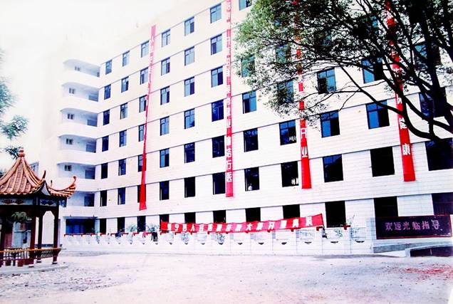 图为1997年2月竣工的住院大楼。总投资450万元,建筑面积6240平方米,在当时背景下其规模宏大,居全市之首,它的建成在当时来说为保障全县人民身心健康,加速我县卫生事业发展奠定了基础。但现已远不能满足我县医疗卫生需求。