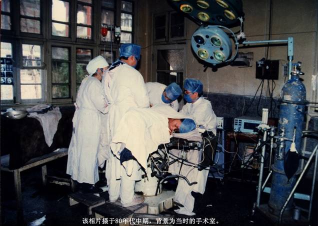 图为80年代前期我院的手术室。医护人员就是在这样简陋的手术室为病人进行手术。