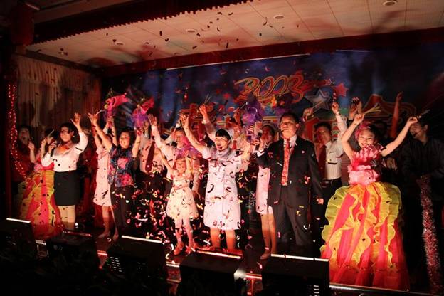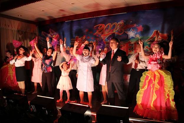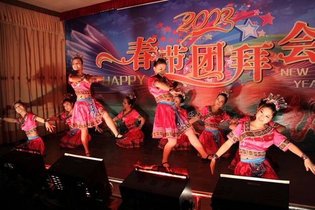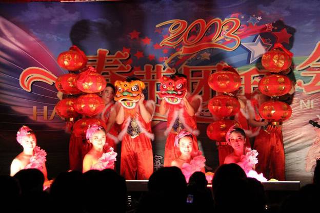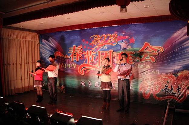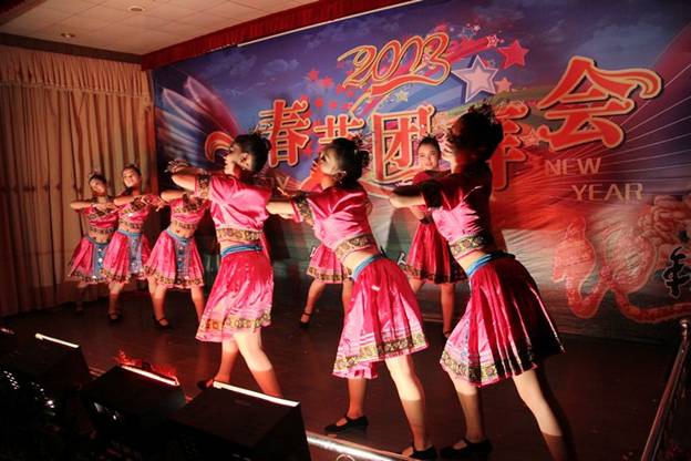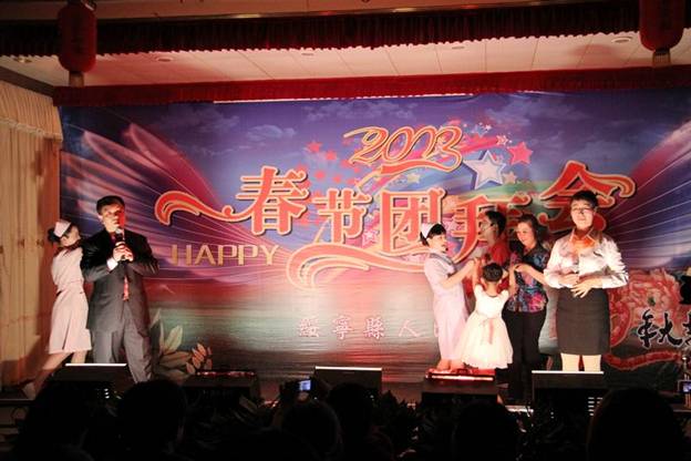 团拜晚会在温情脉脉的音乐和礼爆声中圆满结束。