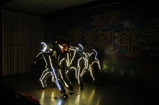 默风趣、滑稽可笑、贴近生活、感染力强,赢得全场阵阵掌声;灯光舞《荧光璀璨》以丰富的想象力和创