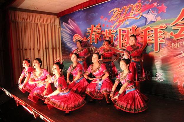 由小儿科、内一科、内二科、内三科、内四科表演的瑶族舞《咛啰哪嘞》