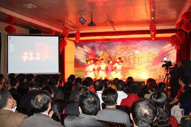 和的节日景象。当晚2013年春节团拜会在这里隆重举行。晚会在全场倒数十位数声中拉开了序幕。县领导