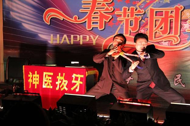 由检验科、药剂科联袂表演的幽默小品《拔牙》
