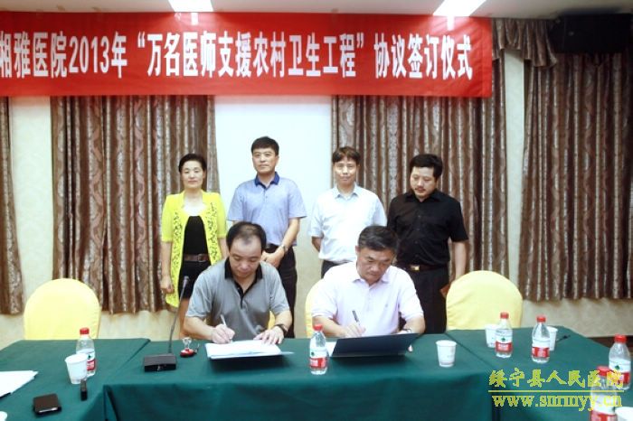 来自绥宁、花垣、保靖、凤凰、通道5县的院长与湘雅医院签订了湖南省2013年度“万名医师支援农村卫生工程”协议书。